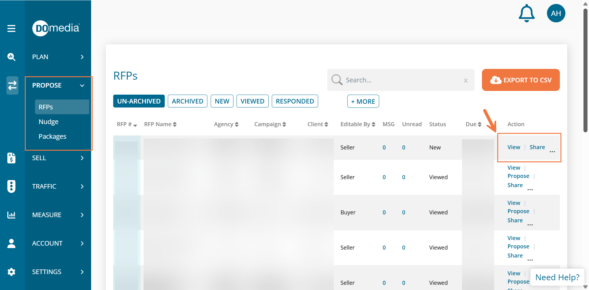 Congratulations on receiving your RFP! To view your RFP you can click the direct link included in the email notification you received to access it or if you are a paying seller, view it from your RFP Dashboard by clicking RFPs under the Propose menu and then View under the Action column.