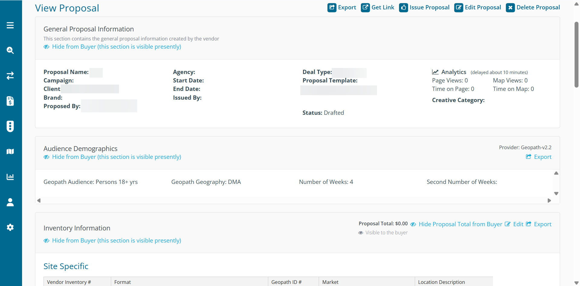 If you were to revise the proposal and remove one of the audience demographics, for example, the system would then remove those columns from the proposal grid. This is what allows the proposal grid to be dynamic.