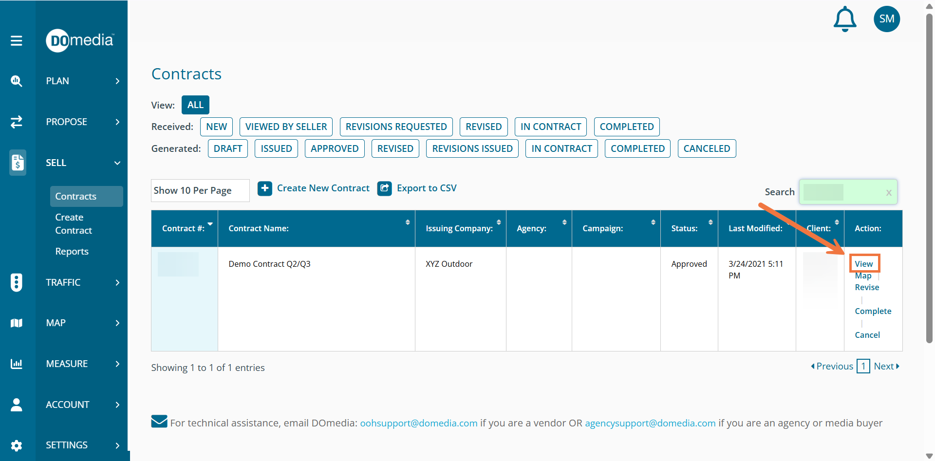 Begin by navigating to your contract dashboard by clicking Sell then Contracts.
