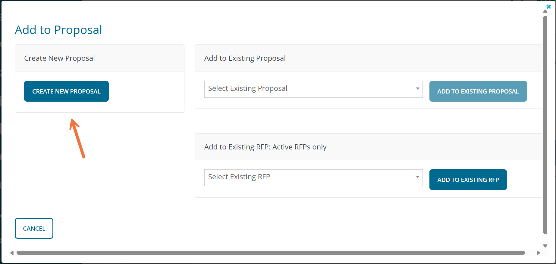 A pop up will appear. Click 'Create New Proposal'. This will add the selected inventory to your proposal.