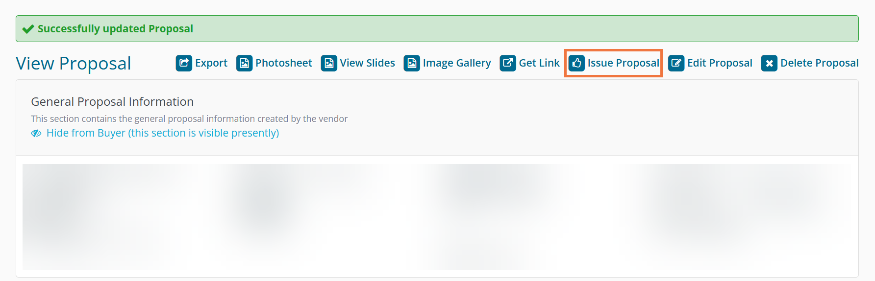Click 'Save' to continue. Once you have finished adding slides, terms, and attachments to the proposal, click Save and Review to confirm your proposal information. If everything is correct, click 'Issue Proposal' to send the proposal to your client.