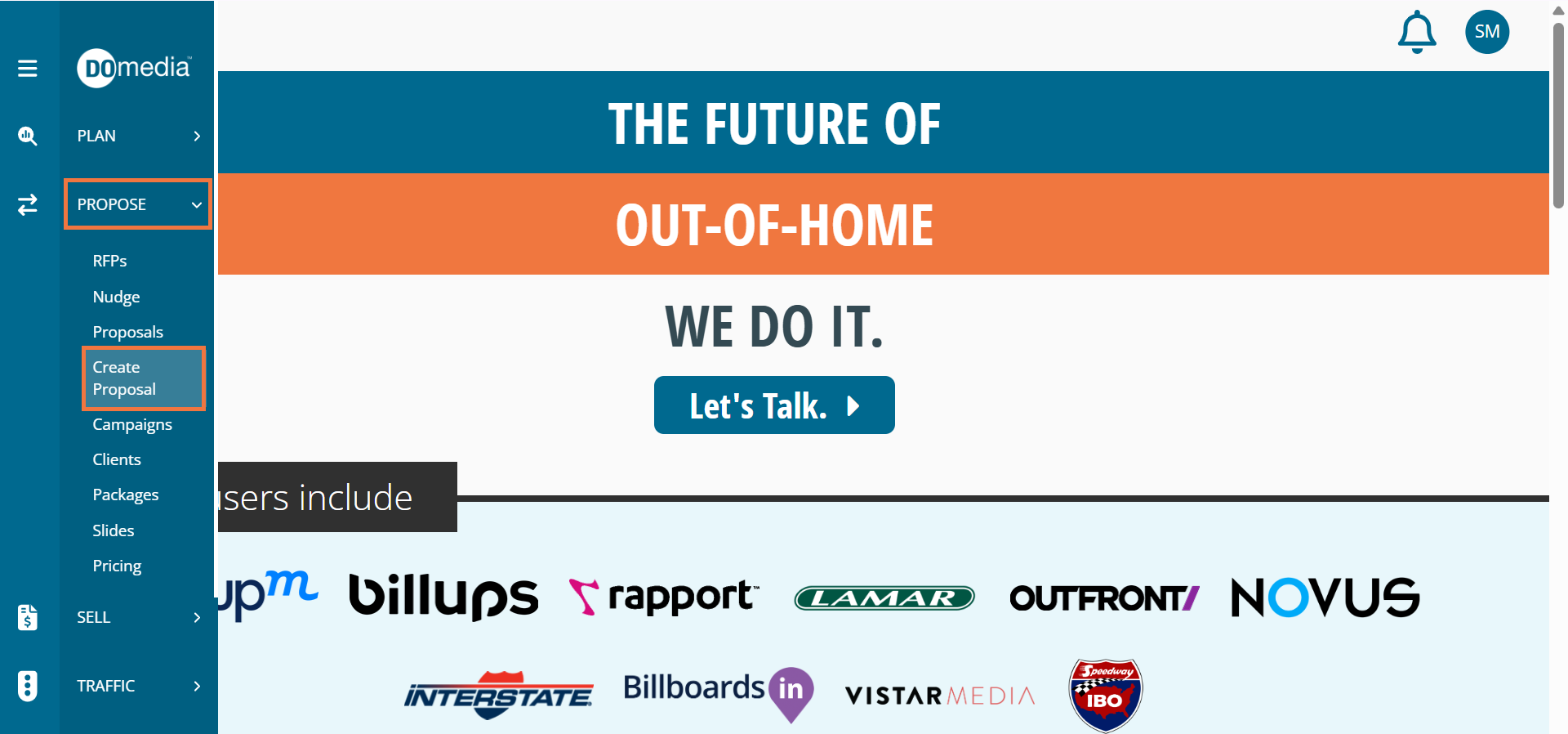 Note: A template must be created to be available for use in a proposal. If no template is selected, the DOmedia default template will be used.