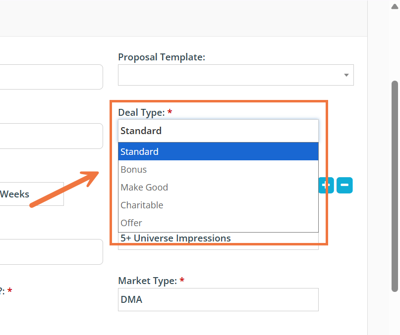 Proposal Template: Select a template (click here to learn how to create a proposal template)
