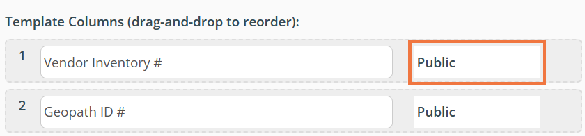 You also have the ability to designate whether or not your custom column headers should be visible to buyers or only internally. You will be able to determine what kind of information can entered to each of your custom fields by clicking the elipsis (...) button and selecting the desired data type from the dropdown menu. Note: If you select 'dropdown' from the list, you will need to provide the values you wish to see in your custom column's dropdown menus.