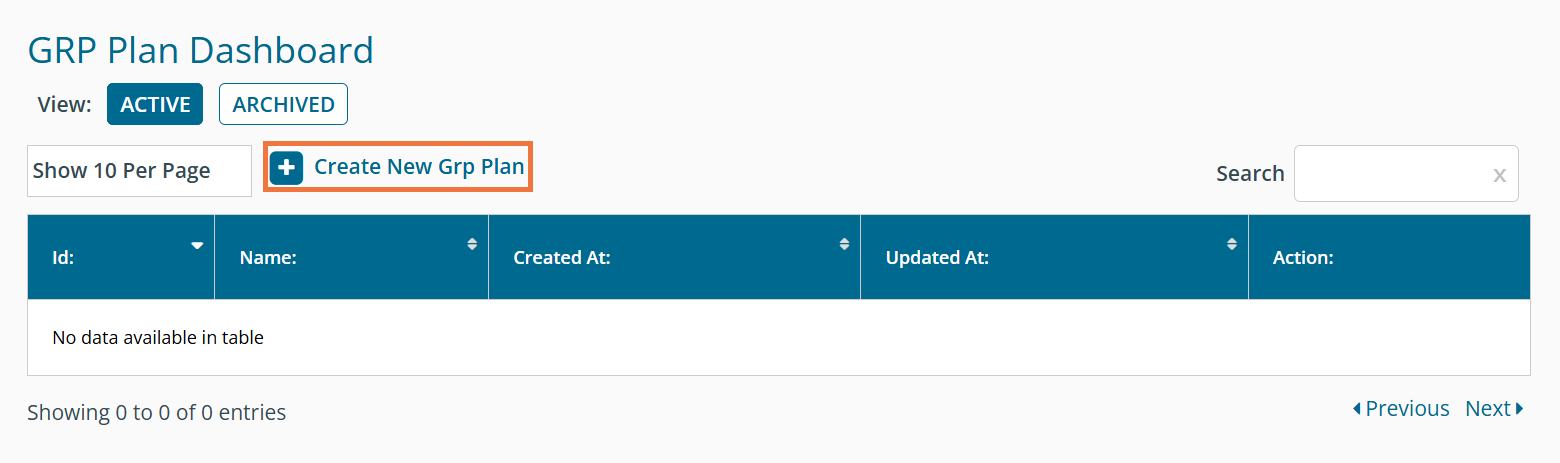 Above the GRP Plan Dashboard, click 'Create New GRP Plan'