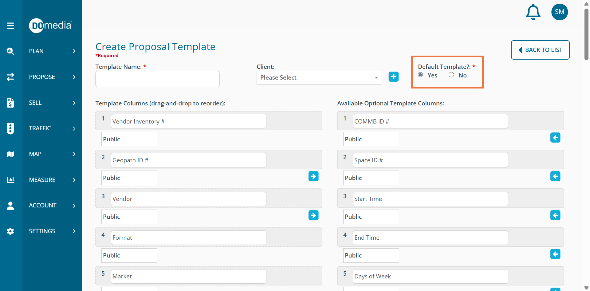 If you have a template that you want all of your employees/users to use when they create proposals, you are able to set a default. When a new proposal is created, it is chosen. The user will still have the option to switch to a different template. Begin by navigating to your Templates by clicking Settings then Templates on the left-hand side menu of your DOmedia homepage.
