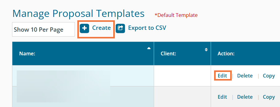 You will now be able to view all your existing templates. You can click Edit under the Action column of your desired template or click Create to start a new template.