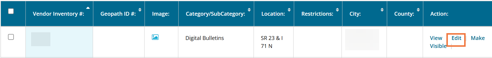 The next step is to run an inventory search to find the piece of inventory you want to associate the image with. Choose an Advertising Category as well as all required information with the red astricks to complete your search and locate the specific inventory you want to update. Once you have found your desired inventory, click 'Search'