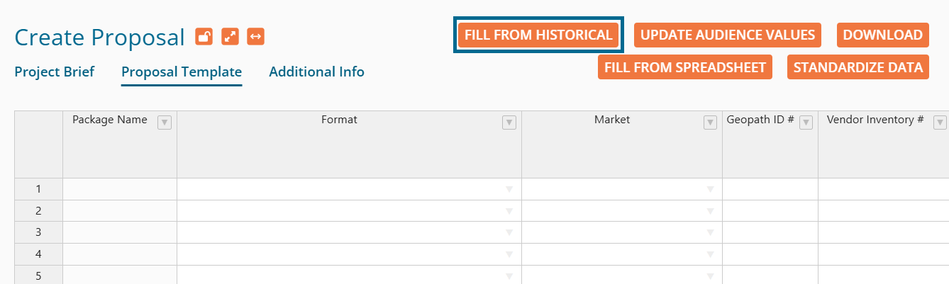 - On Step 2: Proposal Template, click 'Fill From Historical Data.