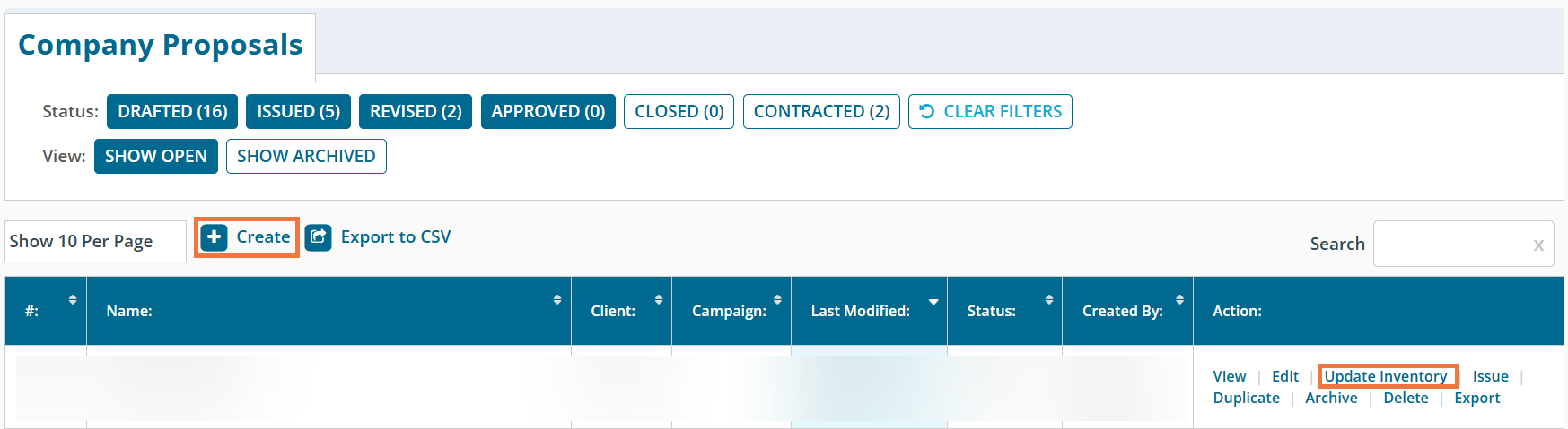 You will now be able to view all your proposals. You can click Edit under the actions column of a proposal you've already created or click Create to create a new proposal.