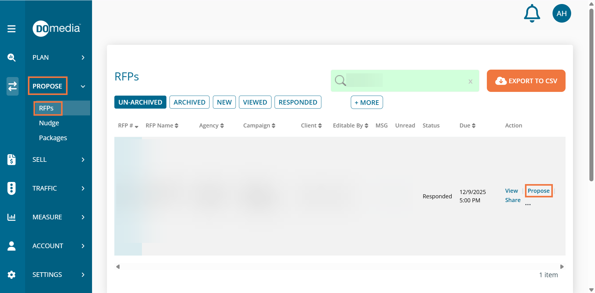 Go to your RFP Dashboard and click "Propose" on the RFP you wish to work on.