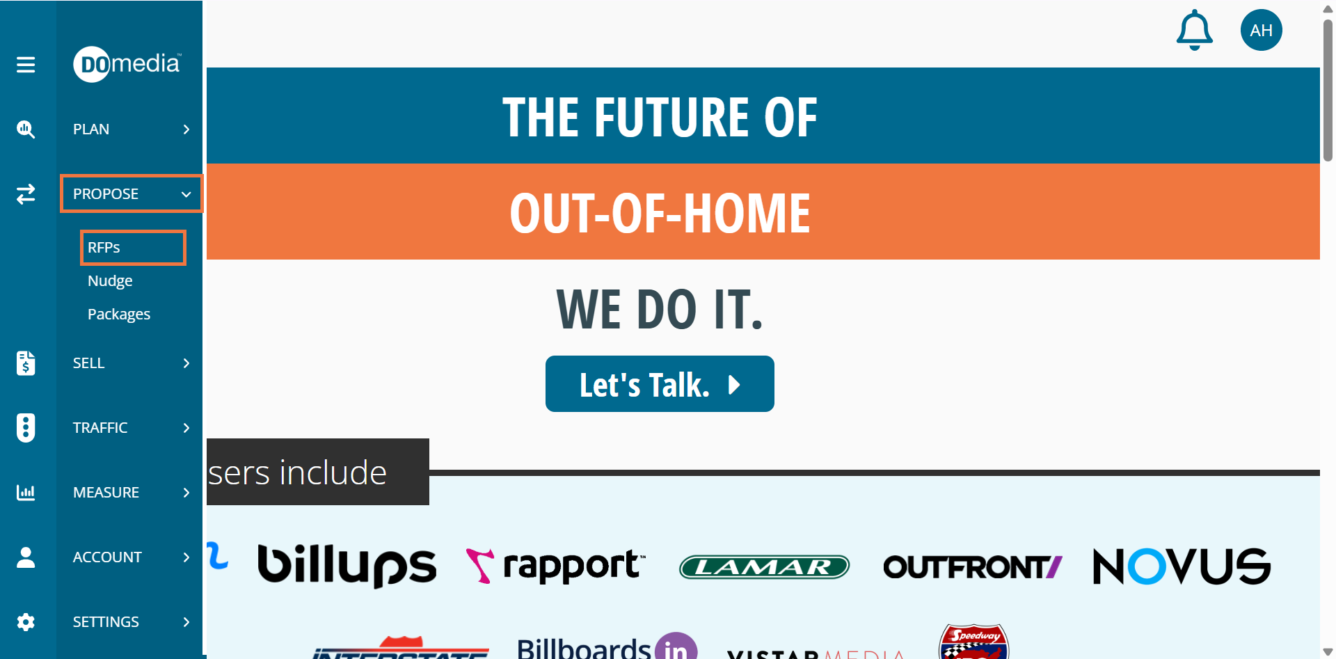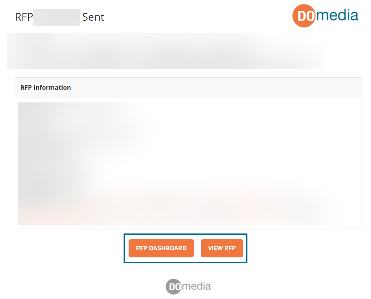 When a vendor receives an RFP, all requests are placed in the RFP Dashboard, which can be accessed via the RFP email notification and in the RFP menu within your DOmedia account.