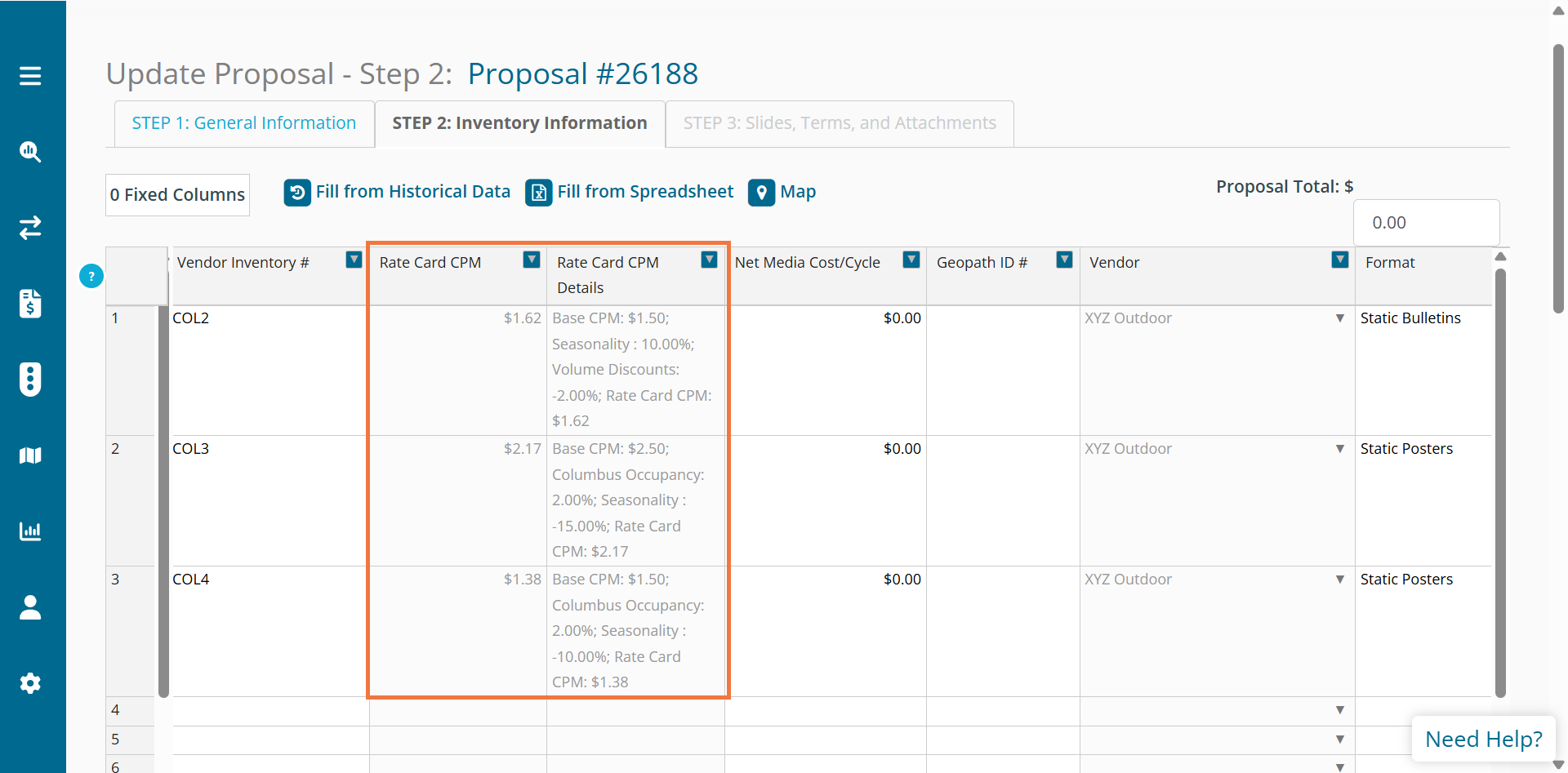 - If you include both CPM and Flat Rate pricing in your template, you have to tell the system which one to use per row in your proposal.