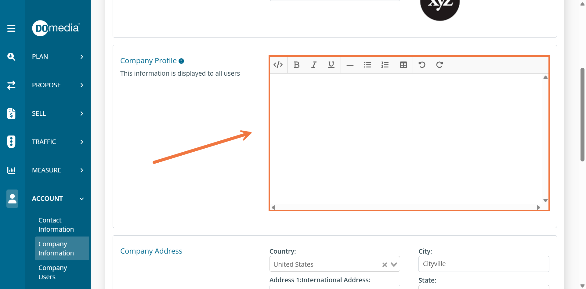 From there, you will have the ability to edit and add information about your company.