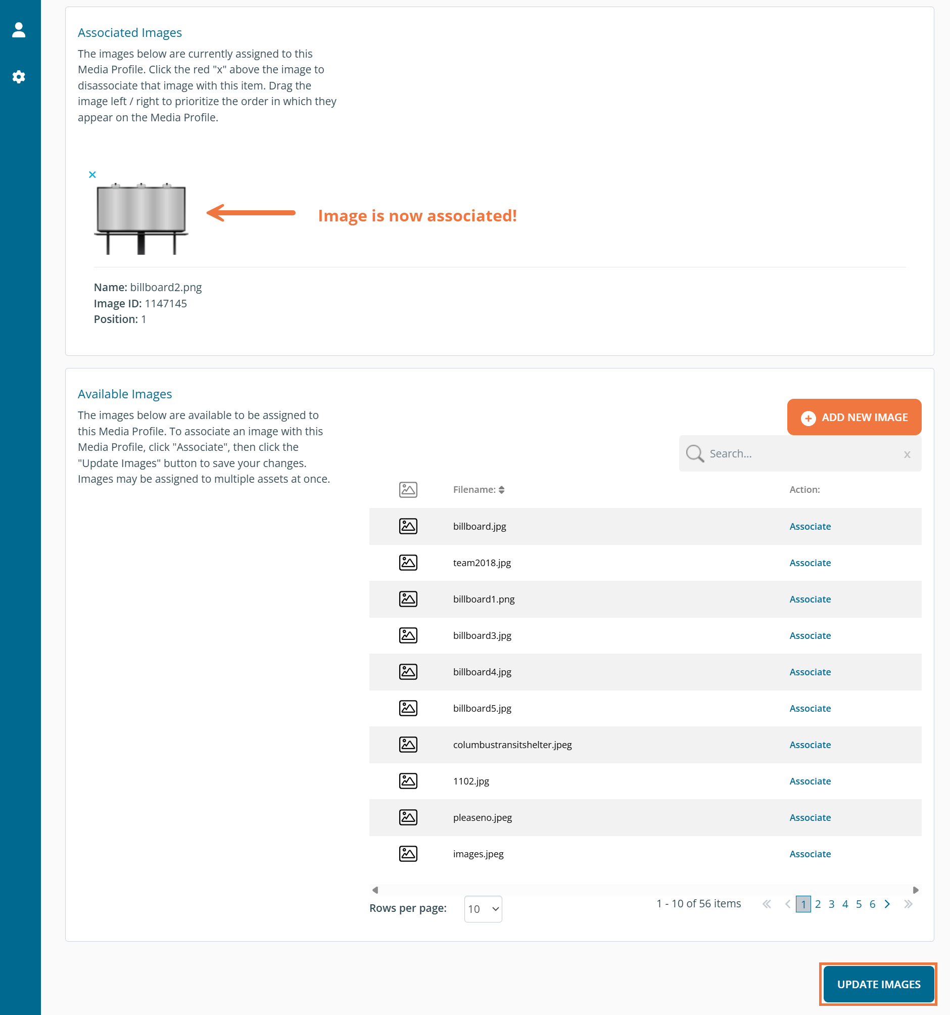 The selected image will appear in the Associated Images section. Scroll down to the bottom of the page, and then click 'Update Images' to associate that picture with the asset.