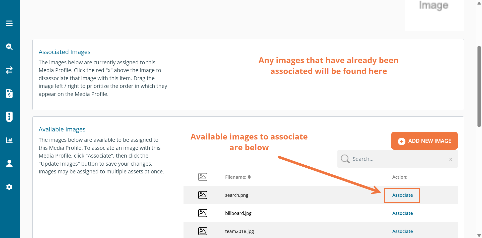 Scroll down to see the available images and select the one(s) that you want to associate to this inventory and click the 'Associate' button.