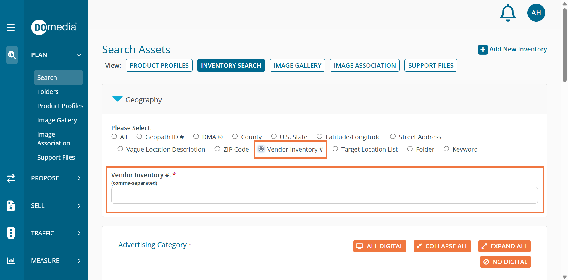 In your DOmedia account, go to Plan > Search: