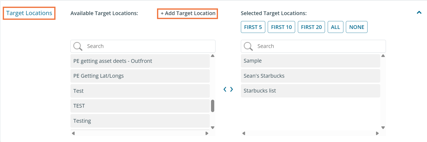 After filling out all the basic information and scrolling down, you will find the target location list section.