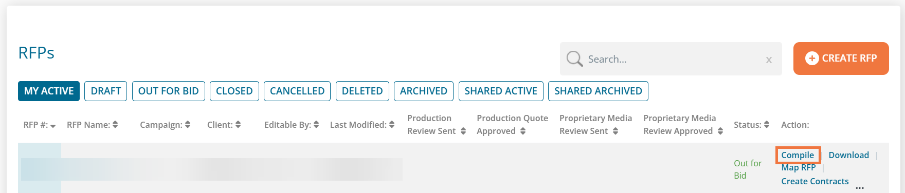 Now, you can view your RFP. Go to 'RFPs', choose the RFP you just created, and then click 'Compile'.