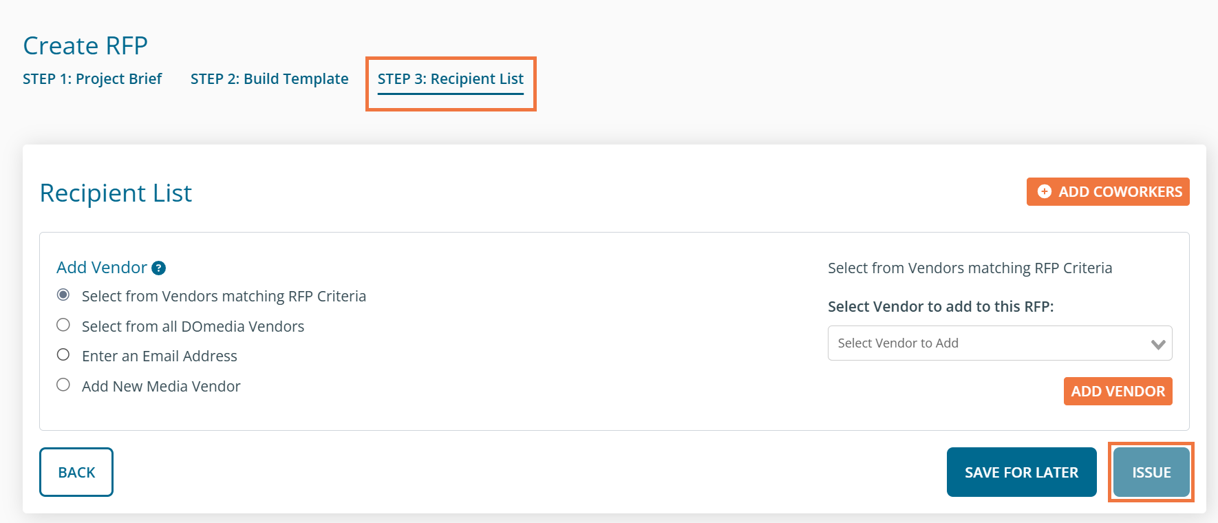 After adding the columns you want, click 'Next' to proceed. Then complete step 3 of creating an RFP and click 'Issue'.
