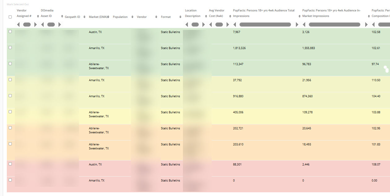 - In Inventory Details (bottom left) inventory is sorted from best to worst for reaching your target audience on the Composite Score Column