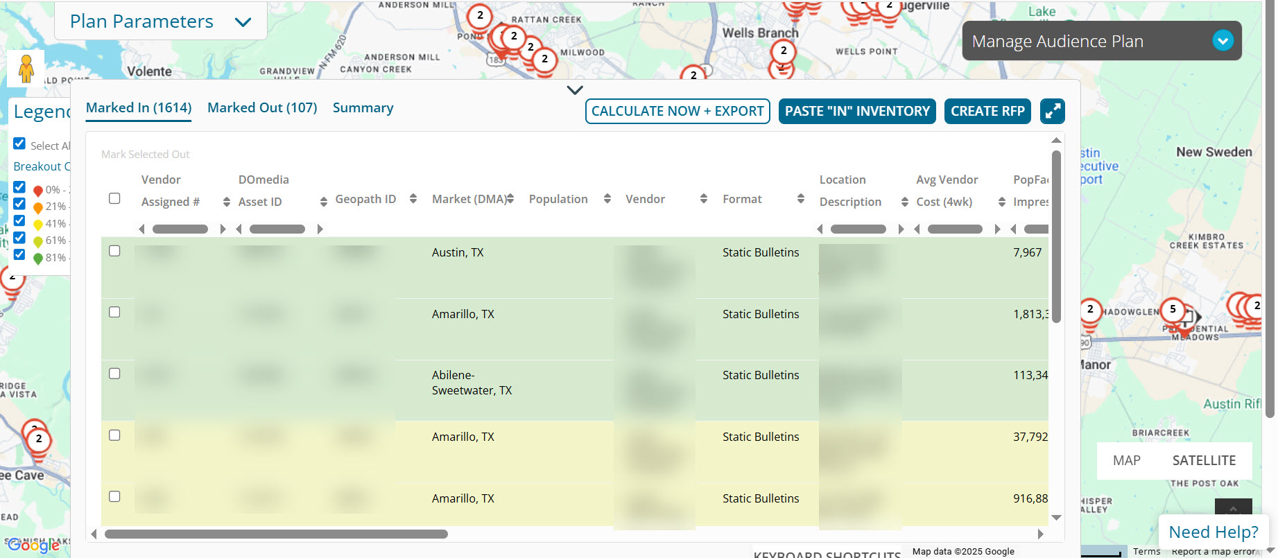 - These options will carry over client, campaign, campaign dates, audience, markets, and vendors into a new RFP. Specific units from the plan are not included in the grid to vendors.