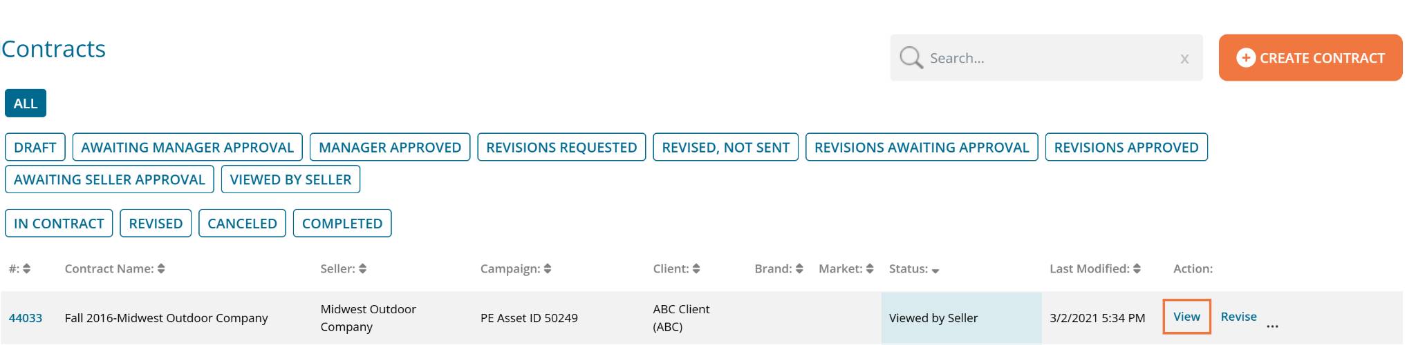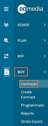 Go to the Contracts dashboard by clicking "Buy," then "Contracts" on the left-hand side menu of DOmedia.