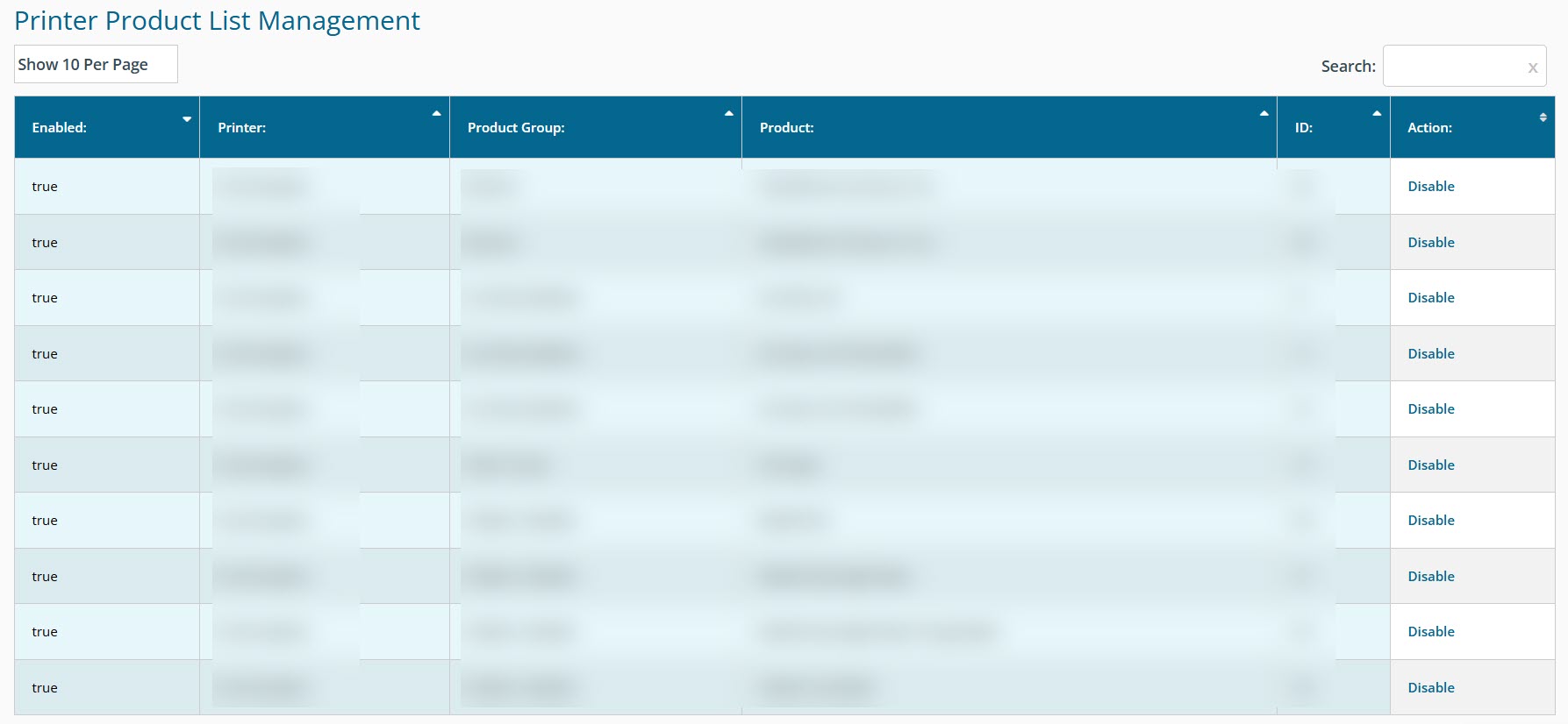 Printer Product List Management (available only to production users):