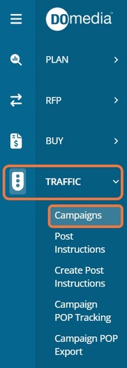To check on the status of an order, click "Traffic" then "Campaigns" on the left side menu.