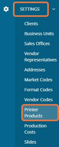 To manage the list of products, click on "Settings" then "Printer Products" on the left-hand side menu.