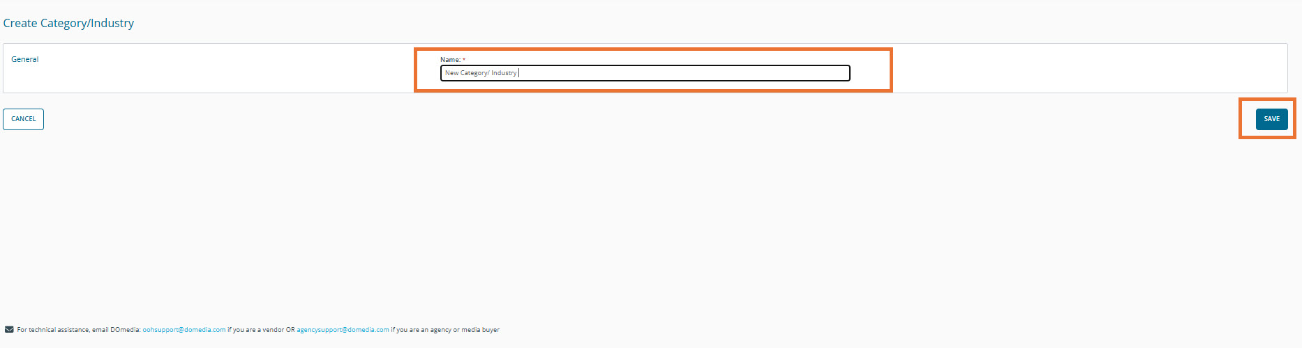 To create a new Industry, click the orange + Create Industry button. This will open a new page where you can add a name for your new Industry a name and save your new Industry.