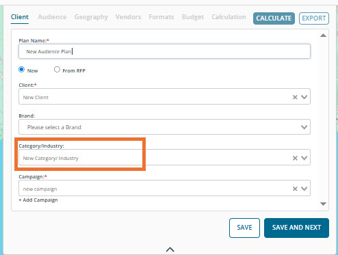 When creating an audience plan, an Industry will automatically be pulled in from the selected client.