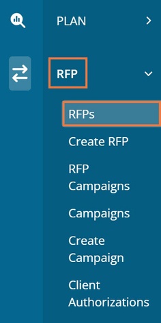 Begin by selecting RFP on the left-hand side menu, then clicking RFPs to navigate to the dashboard. Then you can select the RFP number of the one you'd like to view the history on.