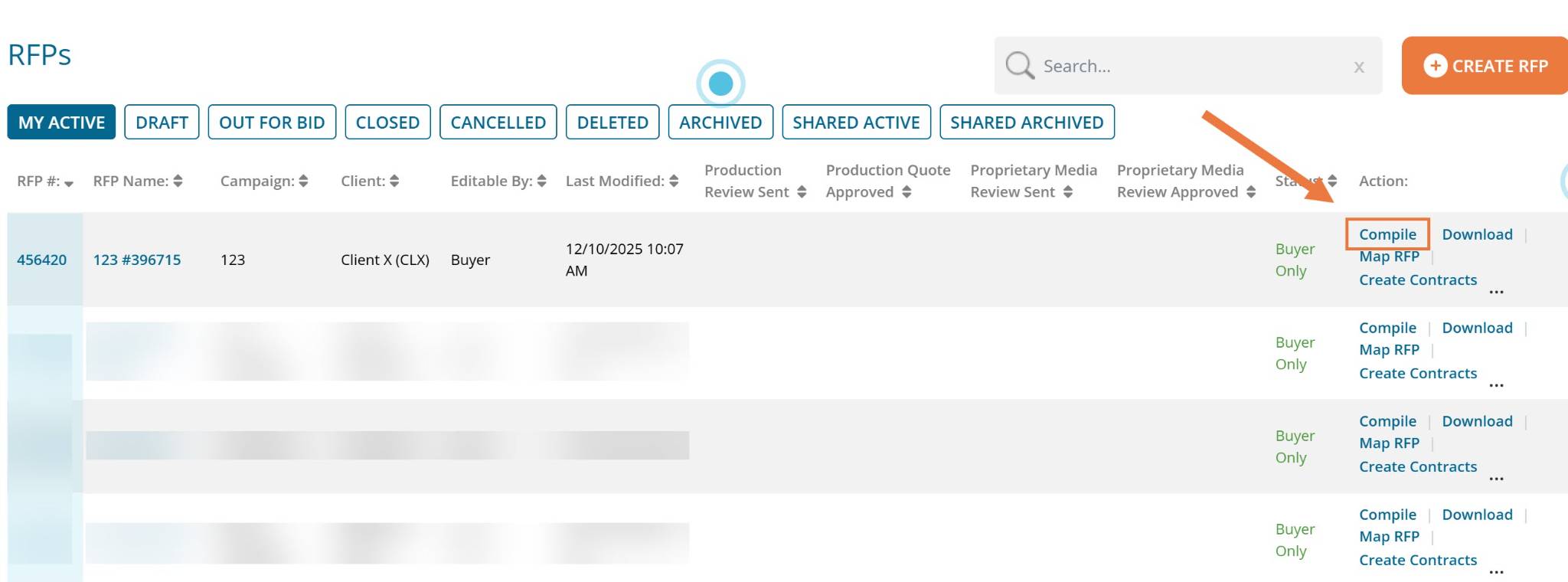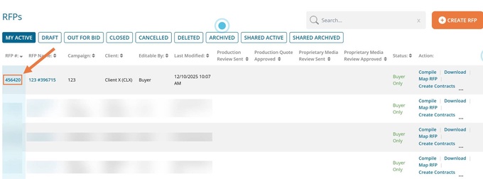 You can also view this by clicking Compile for the desired RFP on the right-hand side.