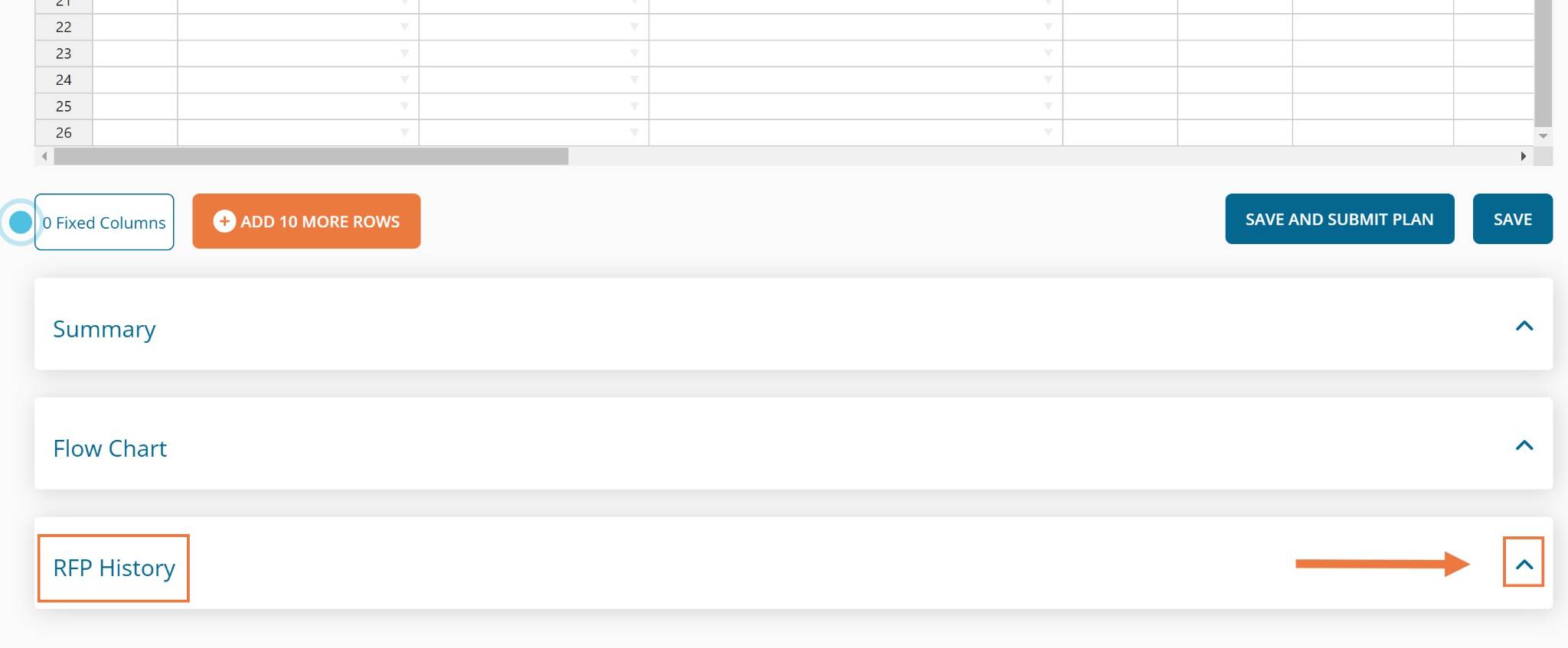This will prompt you to the Compile grid. At the bottom, you will see the RFP history for the one you selected.