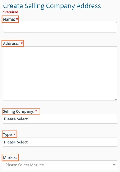 From the Selling Company Address Management page, click on "Create New Selling Company Address".