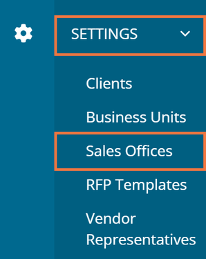 Begin by clicking "Settings" then "Sales Offices" on the left-hand side menu.